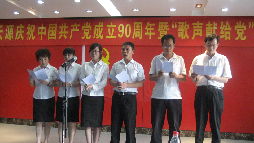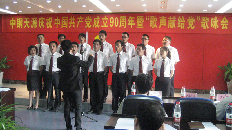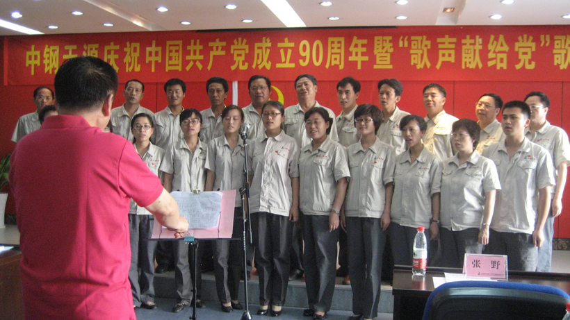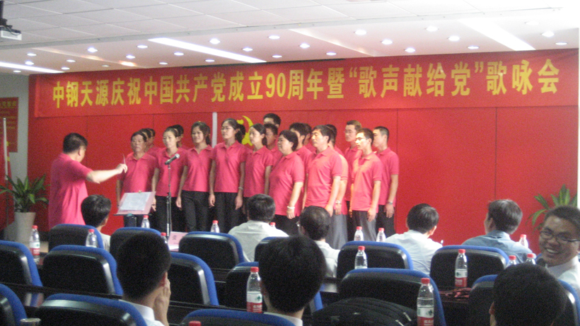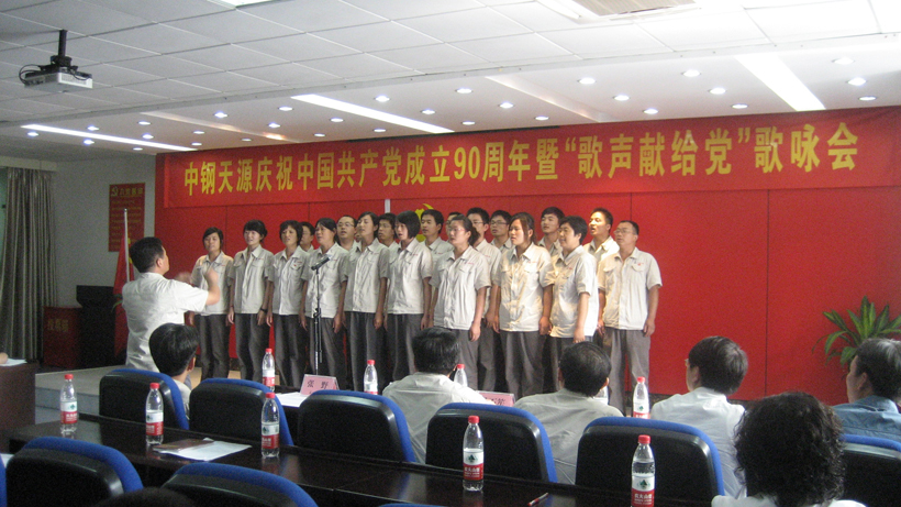 為隆重慶祝中國共產黨成立90周年,歌頌建黨以來的輝煌成就和豐功偉績,鼓舞廣大干部員工堅定跟黨走,當好建設者,建功“十二五”,為公司持續穩定健康發展作出新貢獻,7月1日,中鋼天源慶祝建黨90周年“歌聲獻給黨”演唱會在馬鞍山經濟技術開發區黨員活動中心隆重舉行,由各單位組成的7支代表隊精心準備,排著整齊的隊伍,精神飽滿地參加了演唱會,用最美的歌聲慶祝中國共產黨誕生90周年,抒發對黨、對祖國、對人民的赤誠之心。